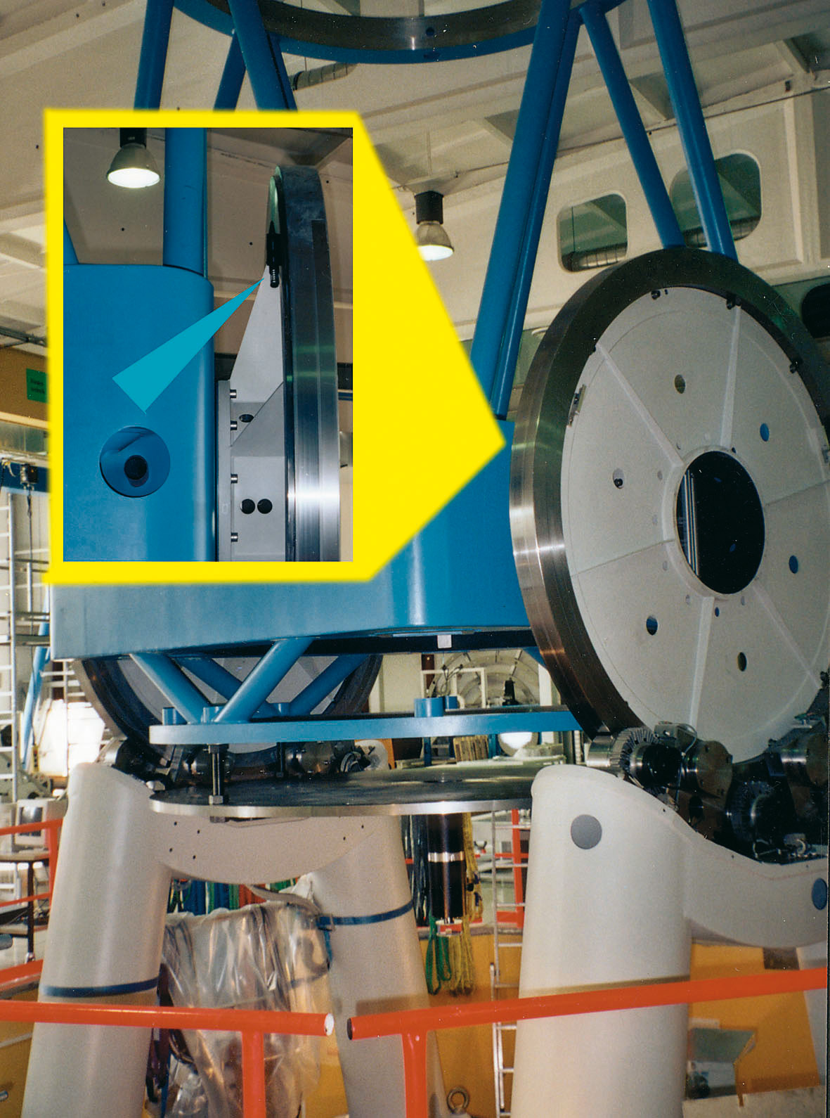 ACE industrial shock absorbers offer safety to spare for swiveling or braking of large telescope. The optical system of this telescope for special observations is moveable in two space coordinates. The structure in which the telescope is mounted weighs 33,069 lbs and consists of a turntable with drives and two wheel disks rotating on bearings. It enables a rotation by ±90° from horizon to horizon. To safeguard the telescope in case of overshooting the respective swiveling limits, industrial shock absorbers ML3325 from ACE are used as braking elements. Should the telescope inadvertently overshoot the permissible swivel range, they will safely damp the travel of the valuable telescope.